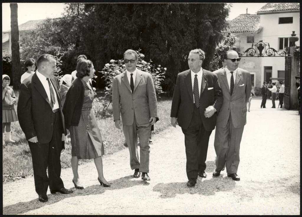 Il presidente della "Mostra degli asparagi", Zoilo Zanussi (2¦ da dx), insieme ad altre personalità, all'ingresso della Villa Di Prampero, in occasione della cerimonia d'inaugurazione della mostra.