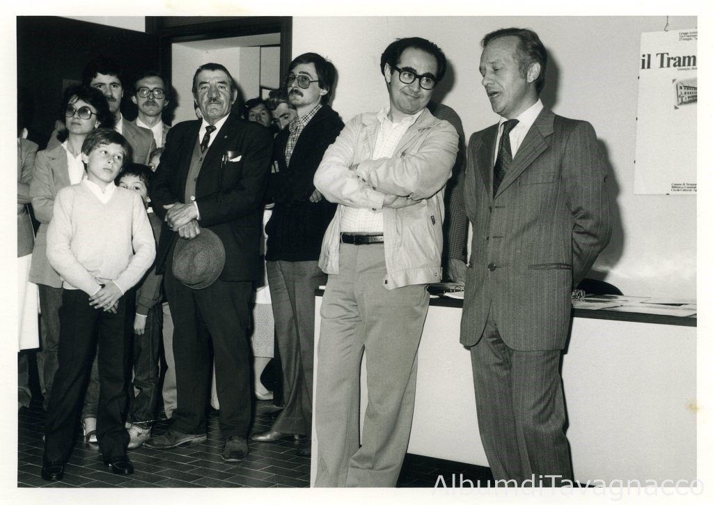 L’assessore comunale Alido Pastorutti durante il suo intervento in occasione dell’inaugurazione della mostra del Tram Bianco, a fianco dell’assessore comunale Mario Maiarelli, all’interno del Centro Sociale.
