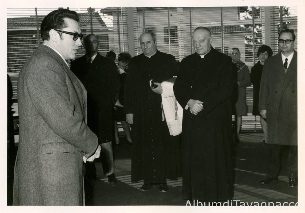Il Sindaco Giannino Angeli tiene un discorso all’interno della Scuola Materna di Tavagnacco, alla presenza dell’Arcivescovo di Udine, Mons. Giuseppe Zaffonato, del Parroco Don Ermes Pidutti, e di varie personalità locali, in occasione dell’inaugurazione del nuovo edificio scolastico.