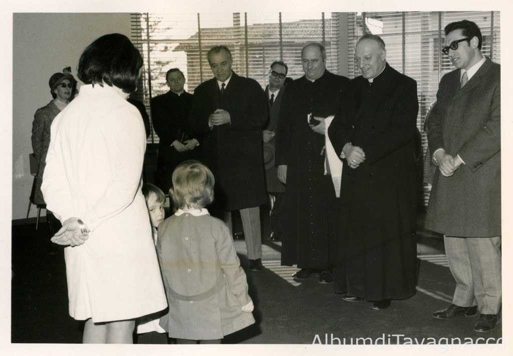 L’Arcivescovo di Udine, Mons. Giuseppe Zaffonato, insieme al Parroco Don Ermes Pidutti e al Sindaco Giannino Angeli, incontra maestre e bambini all’interno della Scuola Materna di Tavagnacco, in Via dell’Asilo, in occasione dell’inaugurazione del nuovo edificio scolastico.