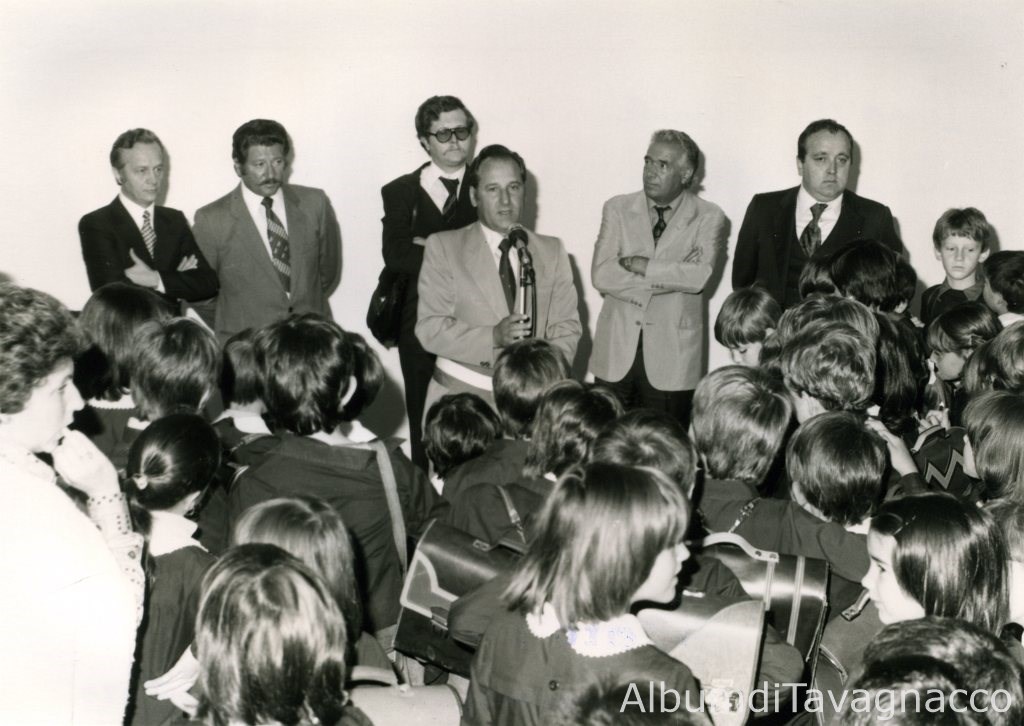 Inaugurazione di nuove aule della Scuola Elementare di Colugna. Il Sindaco Silvano Tarondo, pronuncia il suo discorso, alla presenza dell’On. Loris Fortuna e di altre autorità, all’interno della scuola.