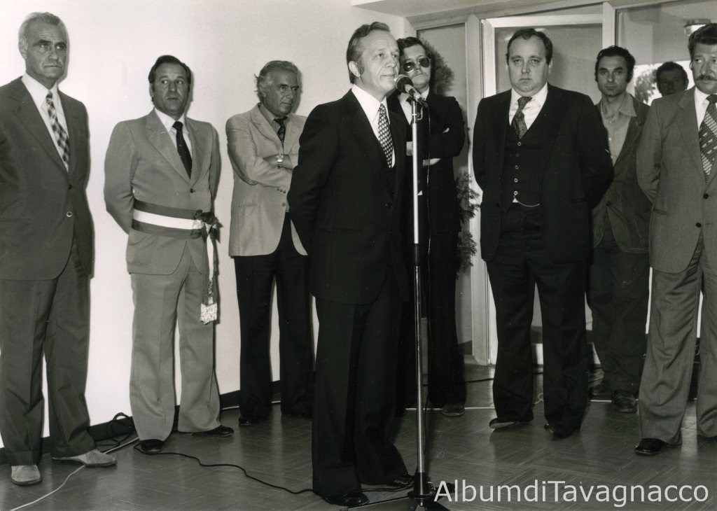 Inaugurazione di nuove aule della Scuola Elementare “Leonardo da Vinci” di Adegliacco. L’Assessore comunale Alido Pastorutti pronuncia il suo discorso, alla presenza del Sindaco Silvano Tarondo, dell’On. Loris Fortuna e di altre autorità, all’interno della scuola.