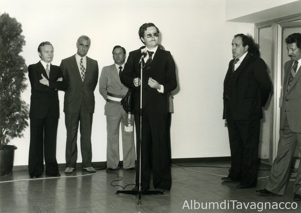 Inaugurazione di nuove aule della Scuola Elementare “Leonardo da Vinci” di Adegliacco. Il Direttore didattico Franco Sguerzi pronuncia il suo discorso, alla presenza del Sindaco Silvano Tarondo e di altre autorità, all’interno della scuola.