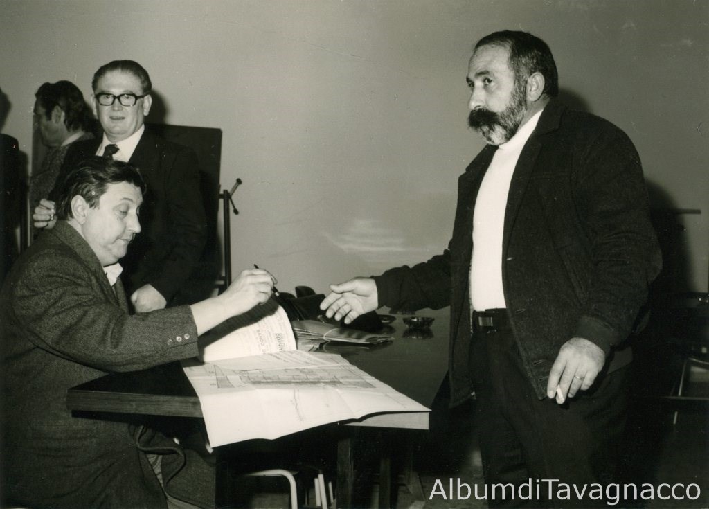 Inaugurazione e assegnazione di 6 alloggi delle case popolari di Via Traiano. L’Ing. Monai (IACP), all’interno del Palazzo municipale, fa firmare l’atto di consegna dell’appartamento a un assegnatario.