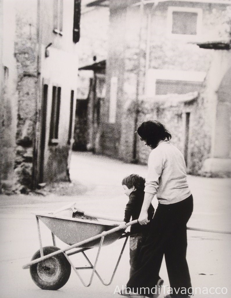 Donna e bambino con la carriola, in Via Matteotti.