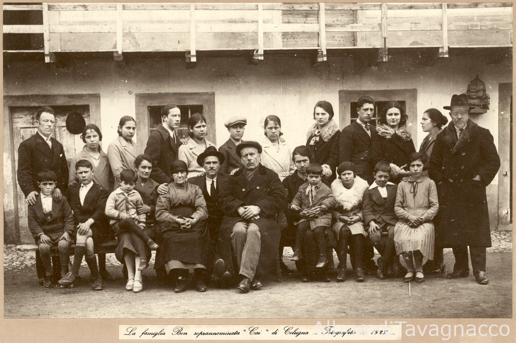 Folto gruppo della famiglia Bon, soprannominata "Cai", in posa nel cortile di casa.