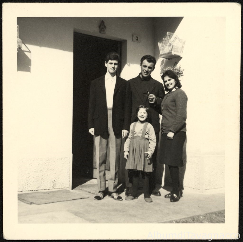 La famiglia Palma in posa sull'ingresso di casa, in Via Dei Martiri.