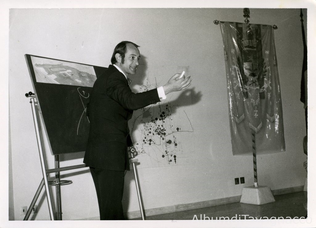 L’Architetto Luciano Di Sopra, nella Sala Consiliare del Palazzo Municipale, illustra il suo progetto dei nuovi impianti sportivi di Feletto, in occasione dell’incontro tra l’amministrazione comunale e l’Assessore regionale Giacomo Romano.