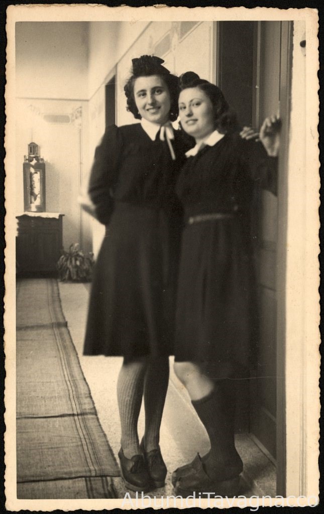 Le sorelle Elda e Anita Feruglio in posa nel corridoio di casa.