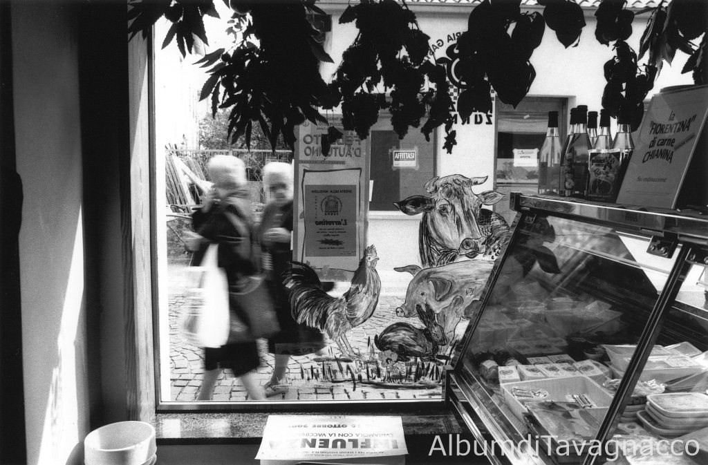 Negozio: macelleria. - Vetrina. - Disegno. - Via Dei Martiri. - Donne: anziane