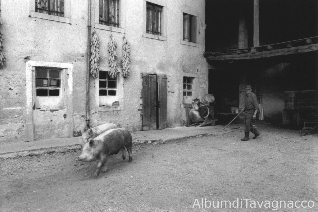 Due maiali in un cortile agricolo di Via Ribis.