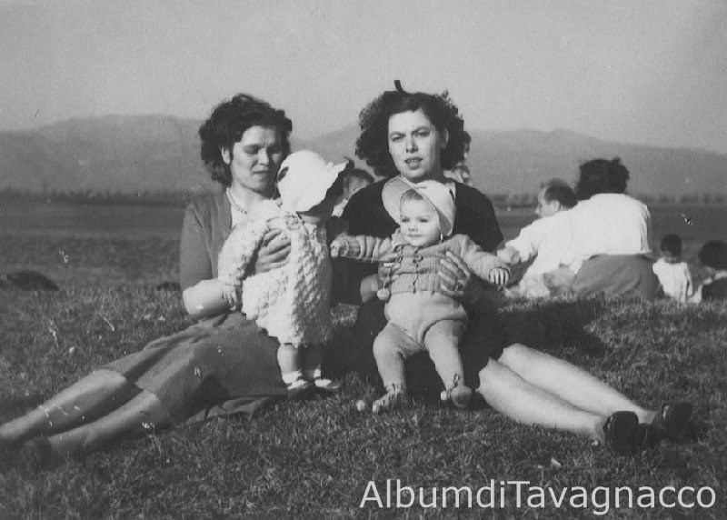 Mamme in posa con i bambini durante una "pasquetta" nei prati.
