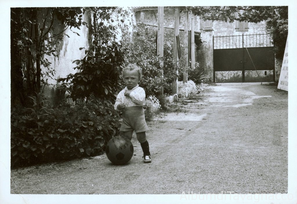 Il bambino Marco Coccolo, all'età apparente di 2 anni, mentre gioca con la palla nel cortile di casa.