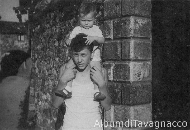 Mario Nonino con il fratellino sulle spalle