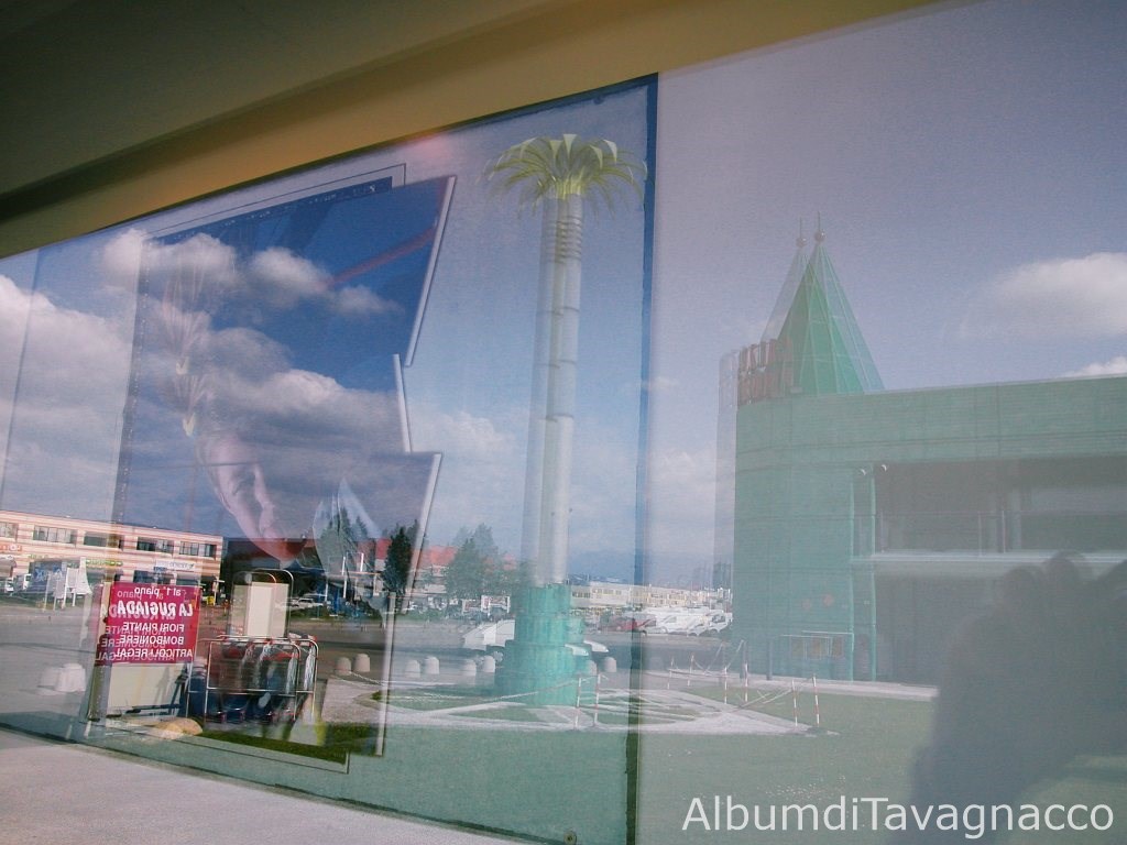 Centro commerciale: Corte Smeralda. - Vetrina. - Parcheggio. - Cartello. - Palma finta. - Automobili. - Furgoni