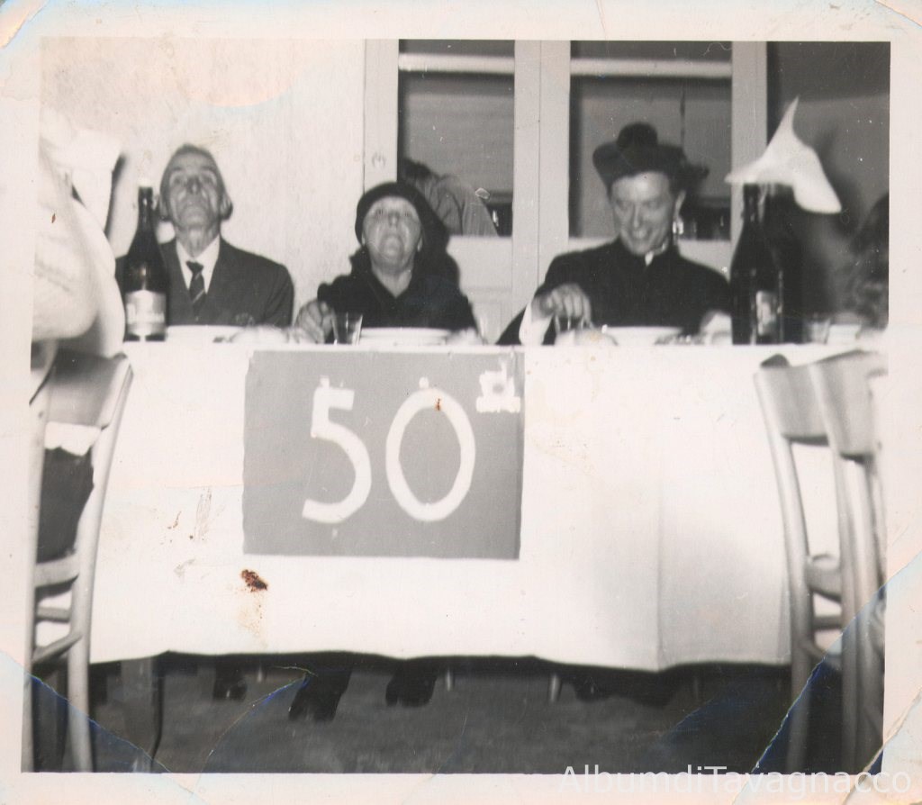 Federico e Angelina Pellarin durante il pranzo per il 50¦ anniversario di matrimonio, insieme al parroco Don Nicolò Rossi, all'interno di casa Pellarin, in Via Canova 1.