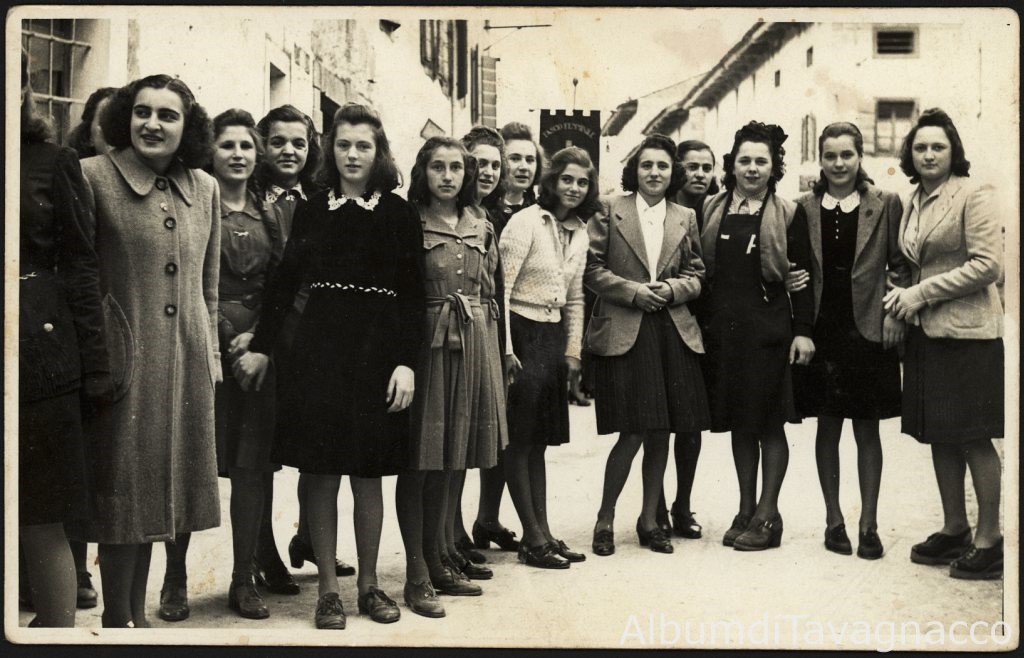 Gruppo di giovani operaie del calzaturifico Micheloni, in posa sulla Via Centrale.