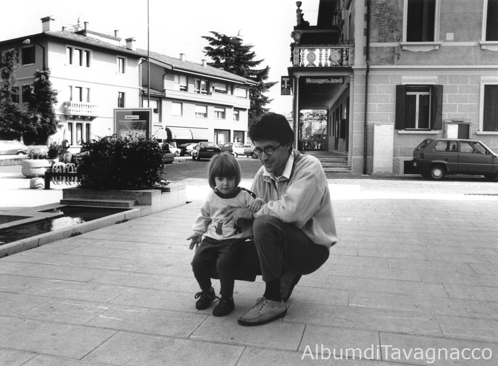 Padre e figlia ritratti in Piazza Giuseppe Garibaldi.