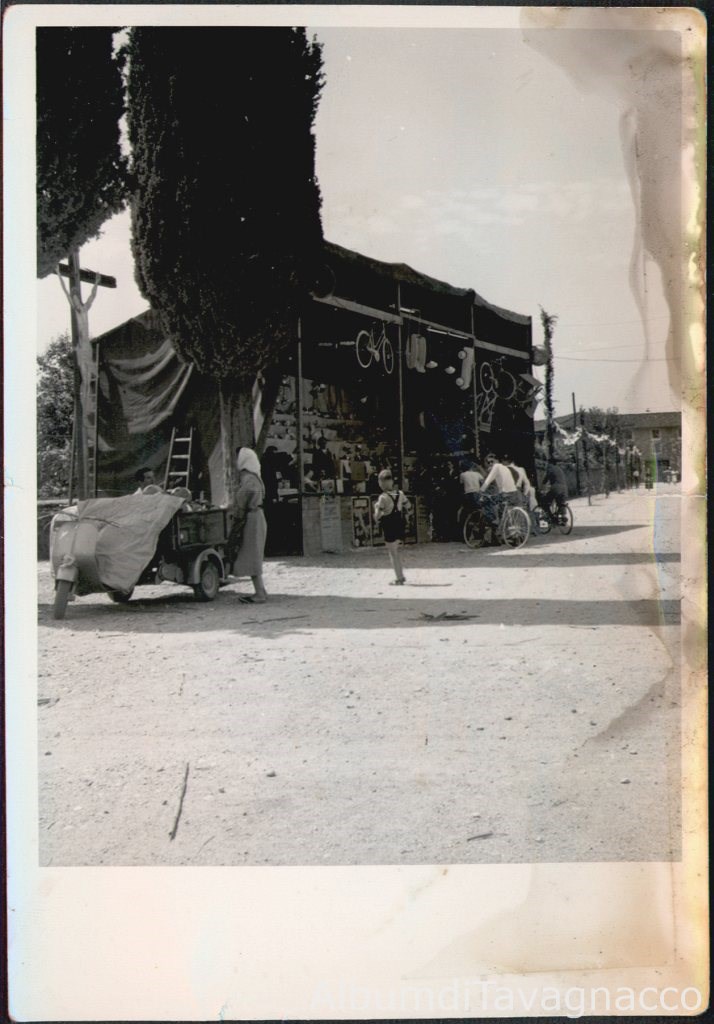 Il baraccone della pesca di beneficenza, installato in Via Dante, nei pressi del crocefisso, durante la sagra d'agosto.