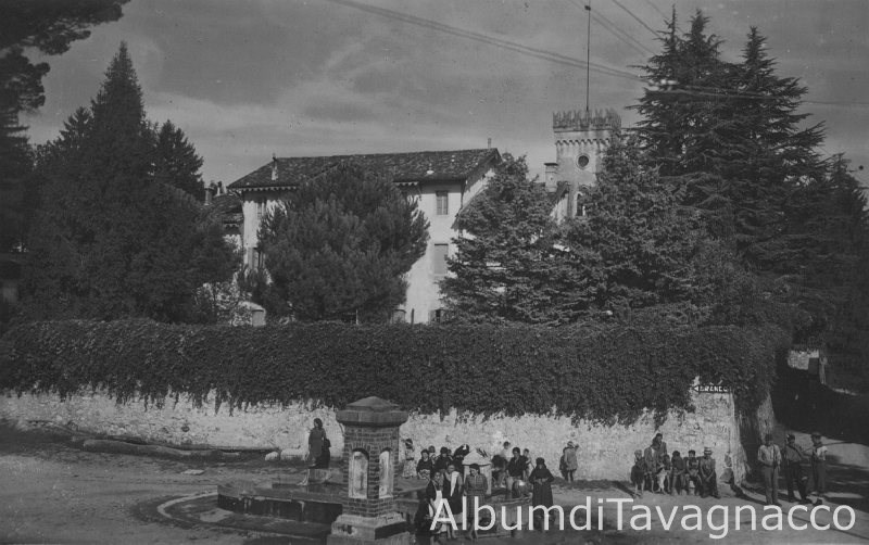 Veduta di Piazza Dell'Ancona animata con gruppetti di persone. Sullo sfondo la Villa Di Prampero.