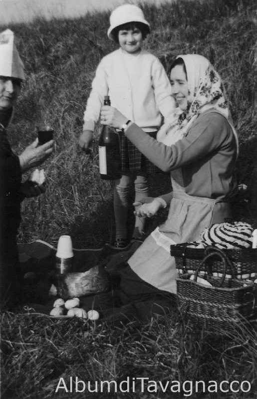 Scena familiare durante un pic-nic di "pasquetta" nei campi.