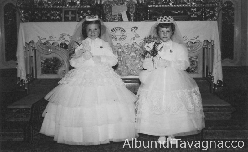Le bambine Gianna Righini e Graziella Peressotti, in posa sull'altare della chiesa di S.Antonio Abate, il giorno della I^ Comunione.