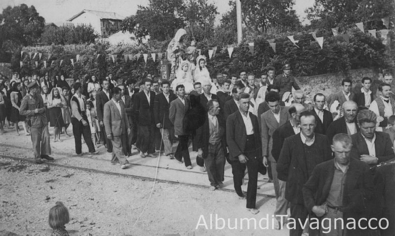 Il corteo della processione in Piazza Dell'Ancona, con la Statua della Madonna Missionaria e con tutti i partecipanti che camminano scalzi.