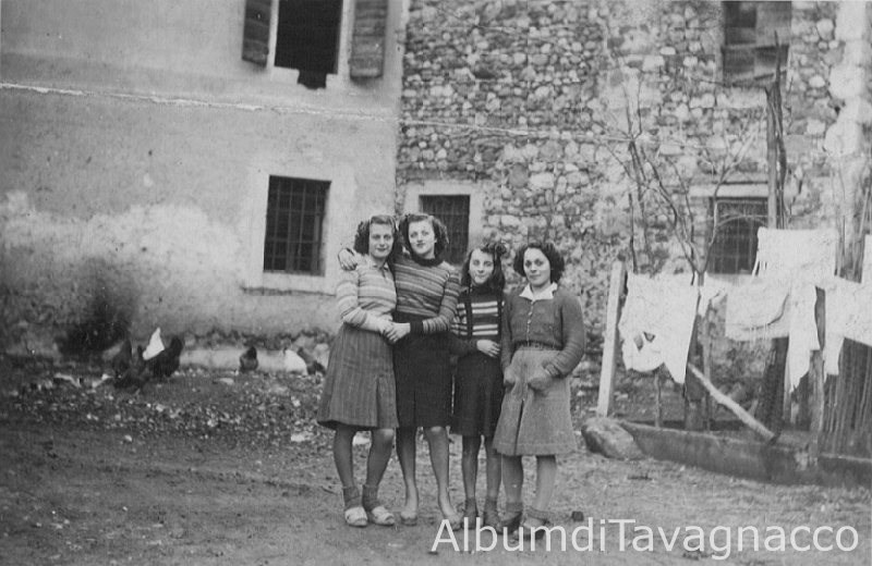Gruppo di quattro ragazze in posa nel cortile. Da sinistra: Liana Righini, Alice Cisilino e altre due ragazze.
