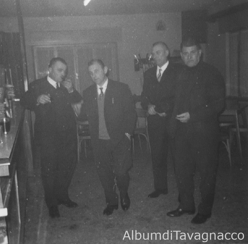 Istantanea di quattro uomini che bevono al banco del Bar "CRAL".