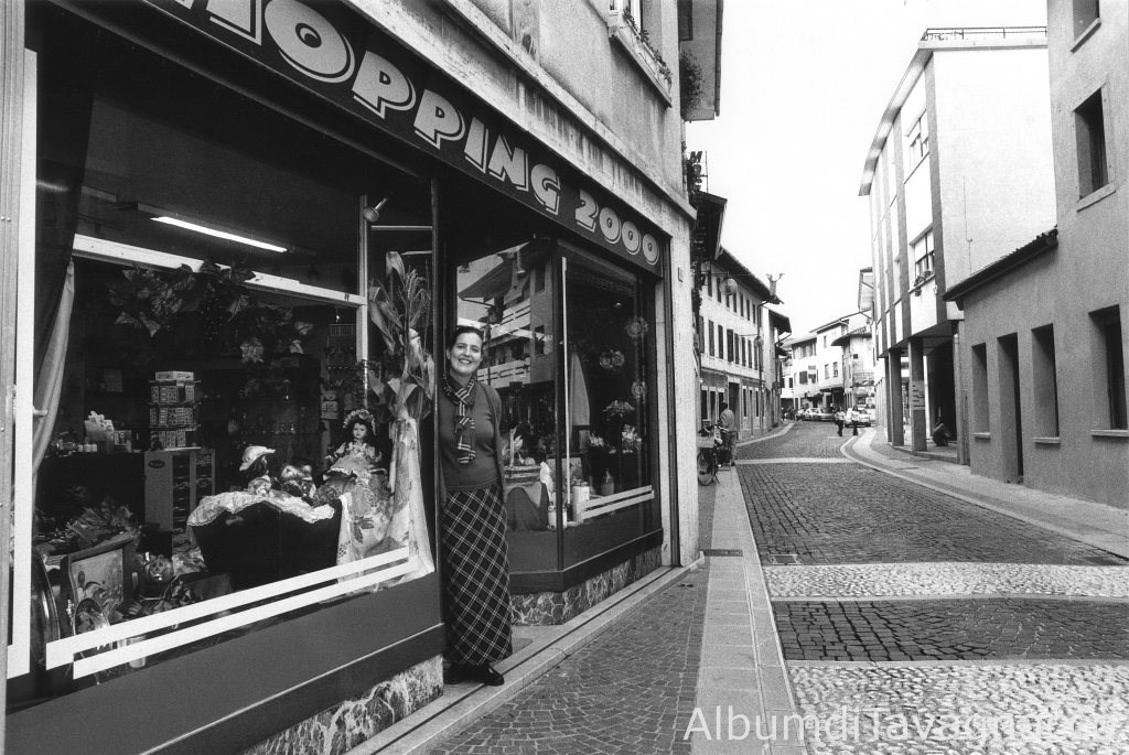 Ritratto sulla soglia del negozio ‘Shopping 2000’, in Via Dei Martiri.