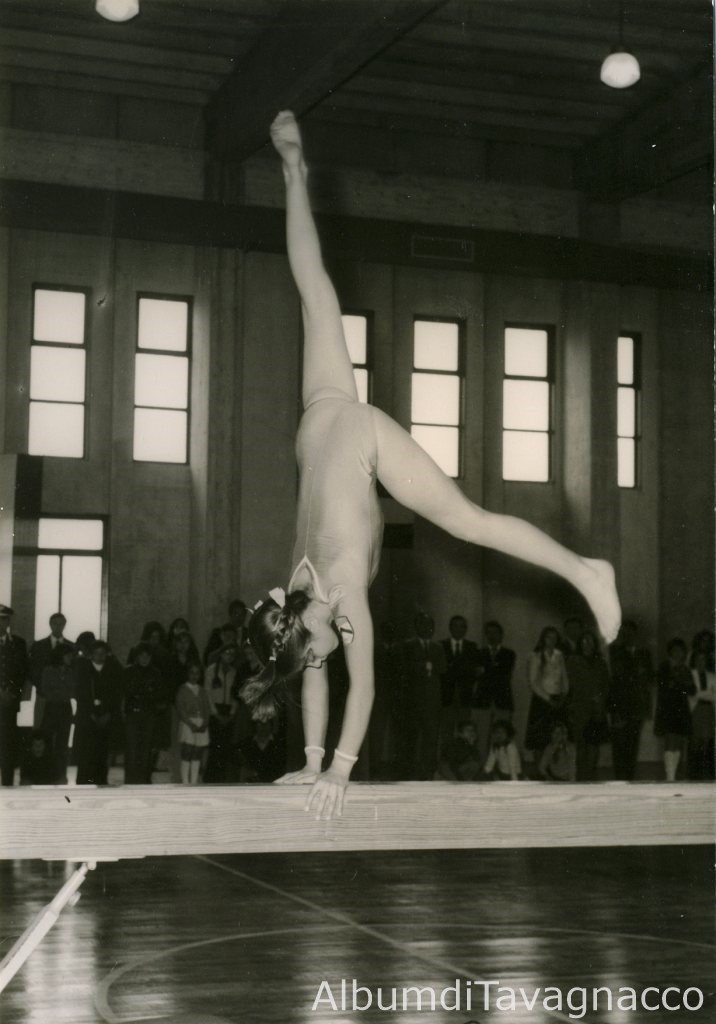 Giovane ginnasta esegue il suo esercizio durante il saggio ginnico all’interno della Palestra di Feletto, alla presenza di autorità e popolazione, in occasione dell’inaugurazione ufficiale della palestra.