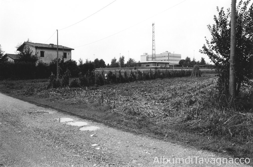 Via Trento. - Strada sterrata. - Alberi. - Viale Venezia: tangenziale. - Fabbricato. - Traliccio