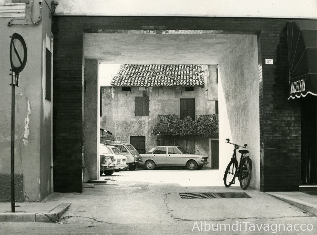 Accesso moderno ad un cortile con una vecchia casa, nel centro di Feletto.