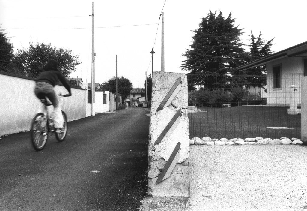 Via E. Toti. - Ragazza. - Bicicletta. - Segnali. - Pali della luce. - Alberi. - Giardino