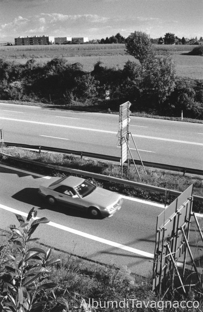 Viale Venezia: tangenziale. - Automobile. - Alberi. - Palazzi. - Campo di mais